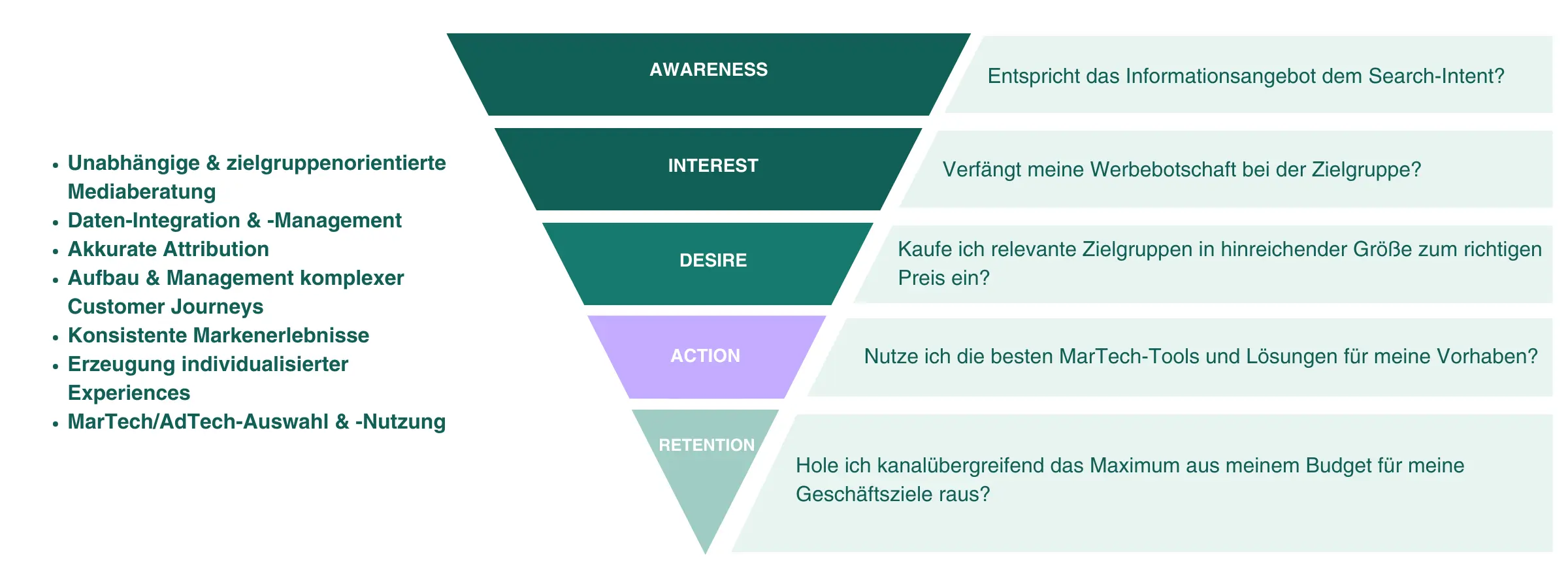Datengestützt übersetzen wir Insights entlang aller Phasen des Marketing-Funnels in durchschlagende Strategien und wirksame Kampagnenausspielung.